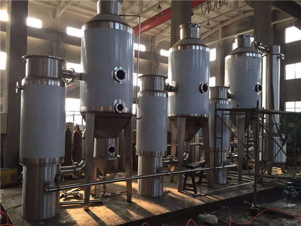 由于多效蒸發在真空壓力下進行,蒸發的沸點可以控制在允許溫度范圍以內,所以多效蒸發可以分離熱敏性物質,如牛奶、果汁的蒸發濃縮。牛奶是熱敏性物料,其加熱溫度不易過高而且受熱時間不易過長,牛奶、蘋果汁的蒸發要在100℃以內進行,糖的清汁濃縮可達120℃,而蕃茄漿要求在70℃以內,溫度高了以后,顏色變深且影響質量,而在蒸發過程中,多效蒸發可以在允許的溫度內,對其進行濃縮,以確保蒸發濃縮后物料的風味和質量。