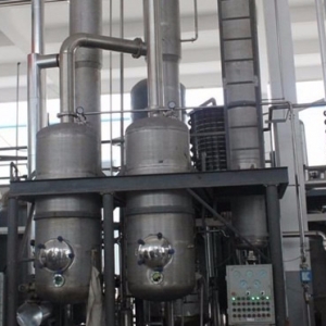 雙效蒸發(fā)器簡(jiǎn)單的說(shuō)就是兩個(gè)單效蒸發(fā)器串聯(lián)在一起,串聯(lián)的方式又分為并流、逆流、平流三種形式。加熱蒸發(fā)器、分離器、冷凝器、熱壓泵、殺菌器、保溫管、真空系統(tǒng)、料液輸送泵、冷凝排水泵、操作平臺(tái)、電器儀表控制柜及閥門(mén)、管路等系統(tǒng)組成。
